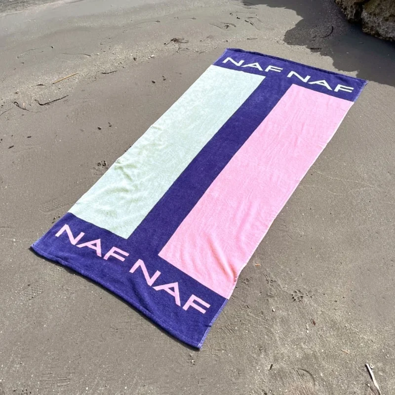 Strandtuch der Marke Naf Naf 100 % Baumwolle, 420 Gramm. Weich im Griff, saugfähig und leicht zu transportieren.