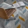 La alfombra Rodier Ennaes es una alfombra rectangular de estilo moderno y multicolor. Ennaes se compone de un dibujo formado de varias figuras geométricas de diferentes tonos de azul combinadas con otras en ocre dorado sobre un fondo en color blanco. Ennaes se puede adaptar a varios estilos decorativos pero sus tonos pastel y sus colores principalmente fríos la hacen ideal para decoraciones estilo nórdico. Ennaes está fabricada en España con algodón 100% reciclado.