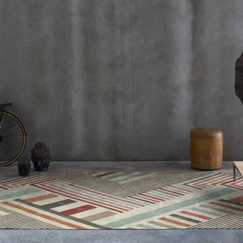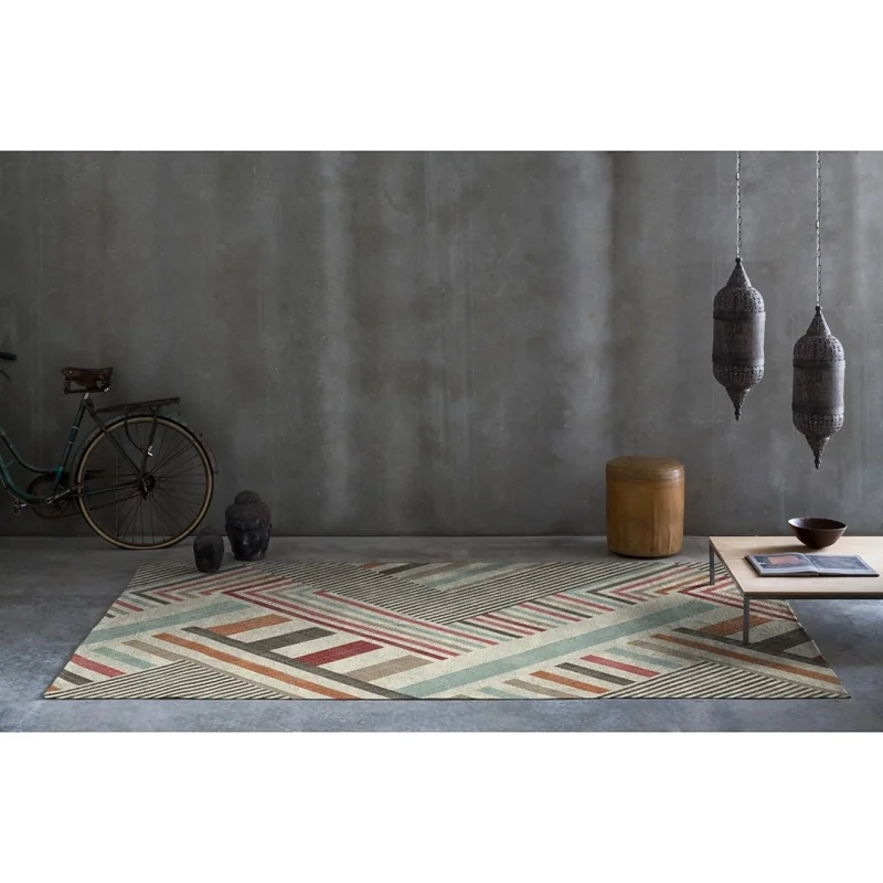 La alfombra Rodier Blok es una alfombra rectangular de estilo moderno y multicolor. Blok es una alfombra elegante con un diseño formado por líneas de diferentes colores disponibles de forma equilibrada sobre una base de color natural o beige. Se adapta a una variedad de estilos decorativos. Fabricada en España con algodón 100% reciclado.