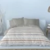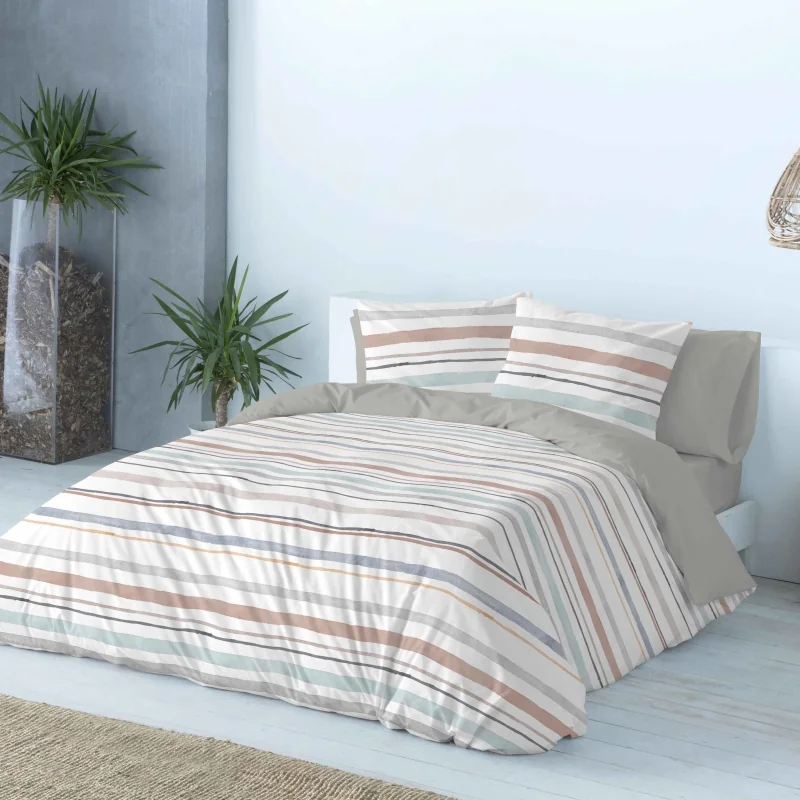 La funda está confeccionada en algodón 100% natural, asegurando un tacto suave y una transpirabilidad óptima para noches tranquilas y reparadoras. Con una densidad de tejido de 150 hilos, garantiza durabilidad diaria manteniendo su nueva apariencia.