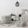 El puff Rodier Ennaes es un puff de estilo moderno y multicolor. Ennaes se compone de un dibujo formado de varias figuras geométricas de diferentes tonos de azul combinadas con otras en ocre dorado sobre un fondo en color blanco. Ennaes se puede adaptar a varios estilos decorativos pero sus tonos pastel y sus colores principalmente fríos la hacen ideal para decoraciones estilo nórdico. Ennaes está fabricado en España con algodón 100% reciclado. No olvides combinarlo con su alfombra a juego. Disponible en dos tamaños