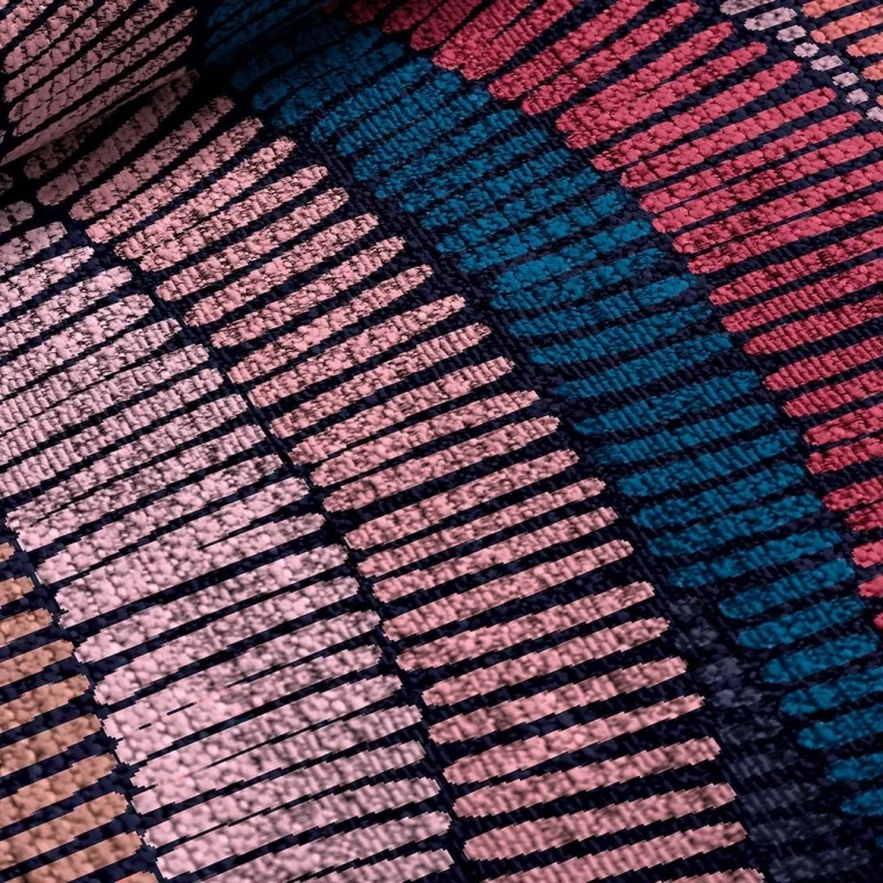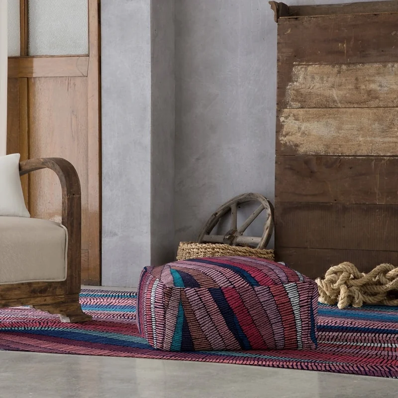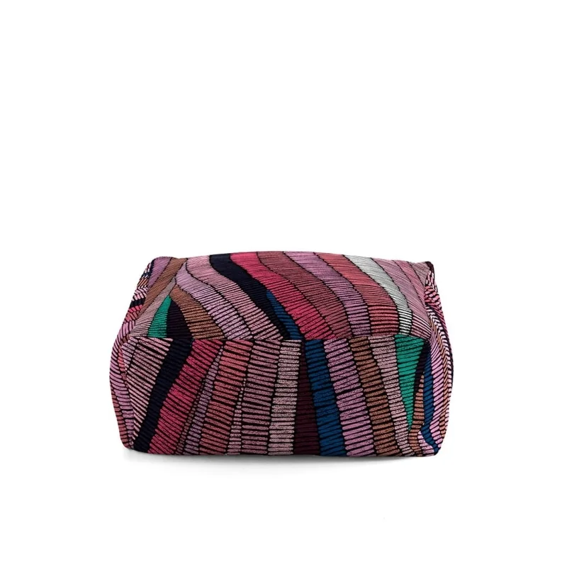 De Rodier Fils poef is een moderne en veelkleurige poef. Lila en paarse kleuren voeren de boventoon, gecombineerd met verschillende tinten blauw. Het is een elegant ontwerp dat kan worden aangepast aan verschillende decoratieve stijlen. Het is gemaakt in Spanje met 100% gerecycled katoen. Vergeet het niet te combineren met het bijpassende vloerkleed. Verkrijgbaar in twee maten