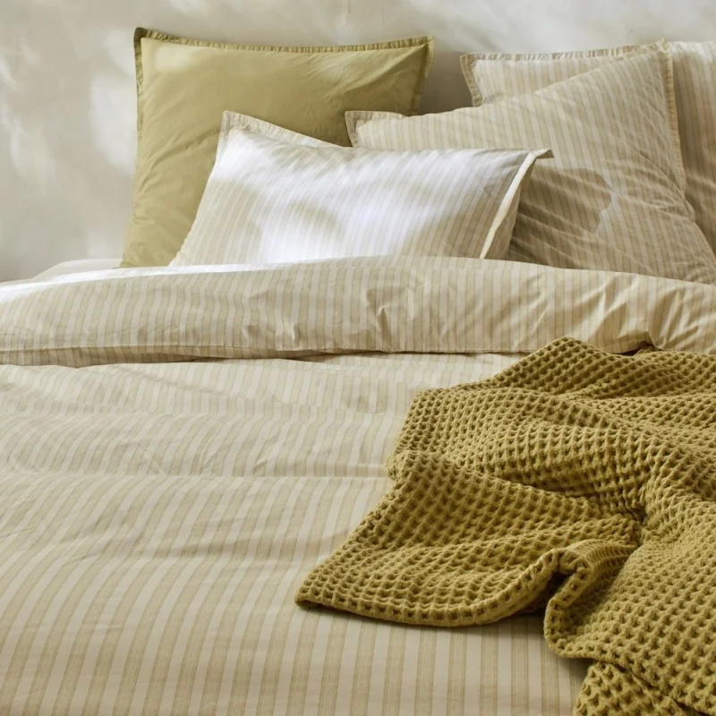 Dit dekbedovertrek is gemaakt van 100% gekamd biologisch perkalkatoen, een stof die bekend staat om zijn unieke zachtheid en uitzonderlijke sterkte. De gebruikte vezels worden zorgvuldig geselecteerd op hun lengte en vervolgens geweven met fijne, strakke draden, waardoor een dichtheid van 230 draden/cm2 ontstaat. Het resultaat ? Een canvas dat duurzamer is dan welke andere stof dan ook en dat natuurlijk zacht is dankzij de superieure kwaliteit van de gebruikte vezels.