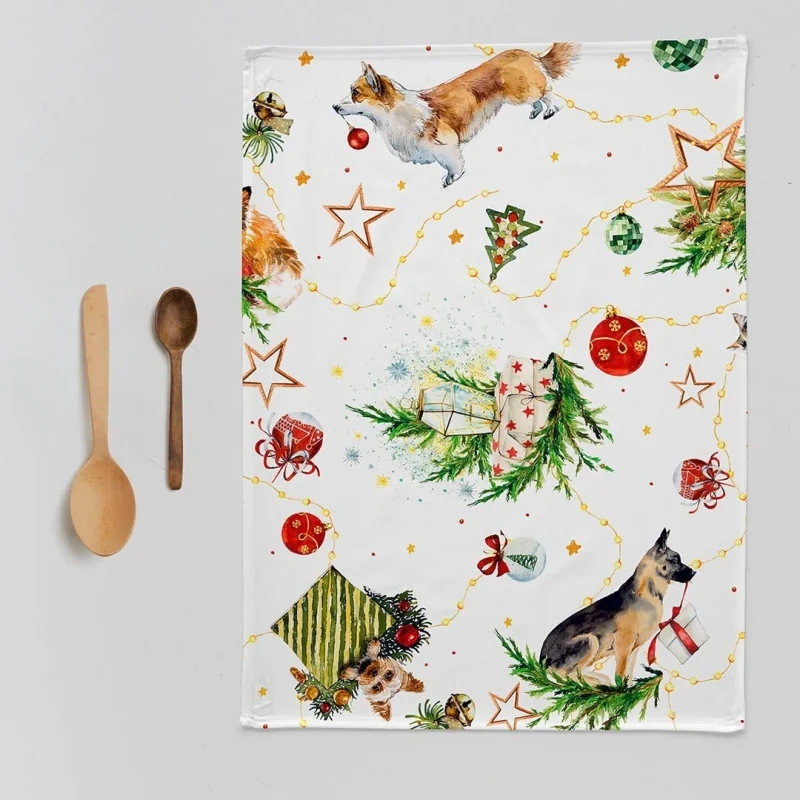 Set van 2 keukendoeken bedrukt met kerstmotieven. Versier je tafel deze kerst met de leukste ontwerpen en verras je gasten. Gemakkelijk wassen en strijken, praktisch en gemakkelijk op te bergen. Combineer ze met het bijpassende tafelkleed