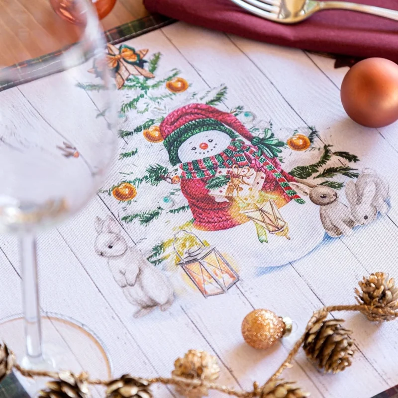 Katoenen tafelkleed bedrukt met kerstmotieven. Versier je tafel deze kerst met de leukste ontwerpen en verras je gasten. Gemakkelijk wassen en strijken, praktisch en gemakkelijk op te bergen.