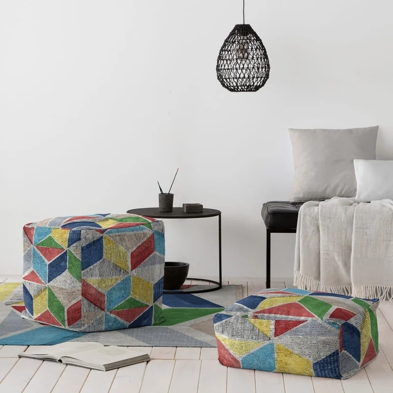 Pufa Rodier Alika to nowoczesna i wielobarwna pufa. Alika to jasne i żywe kolory, które rysują różne figury geometryczne, tworząc nowoczesny i młodzieńczy rysunek. Można go dostosować do różnych stylów dekoracyjnych i jest produkowany w Hiszpanii z materiału pochodzącego w 100% z recyklingu. Nie łącz olejków z alkombrą do zabawy. Dostępne w tamaños dos