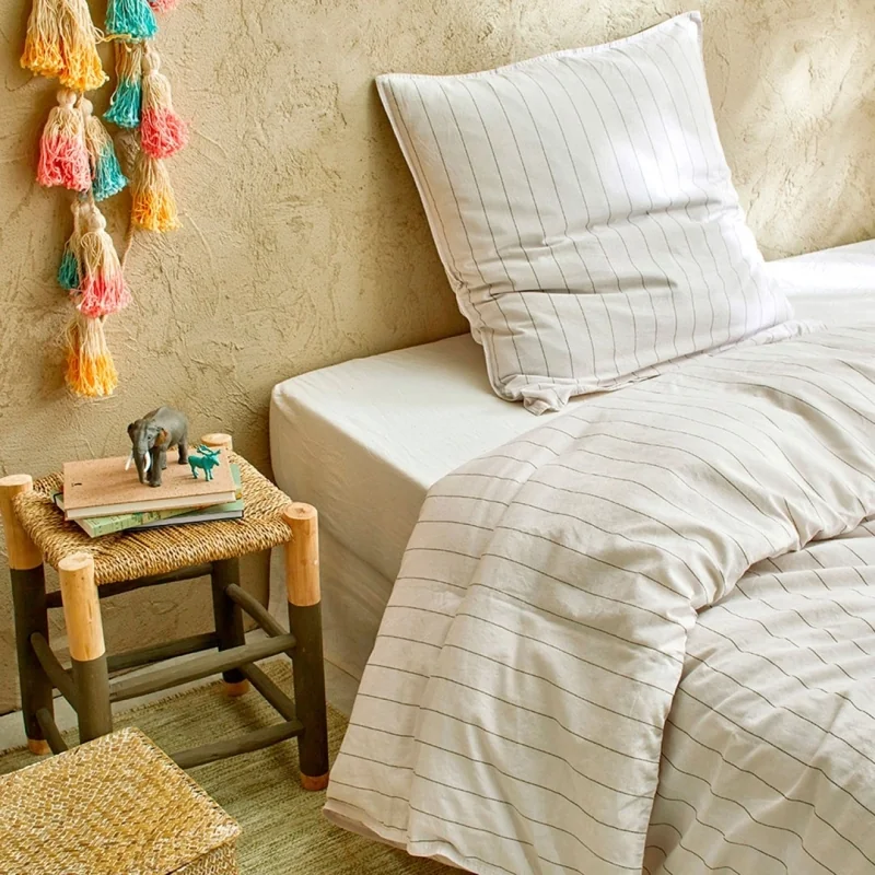 NAF NAF , marka znana ze swojego zaangażowania w jakość i wygodę, przedstawia poszewkę na kołdrę Maho Algue . Wykonana z harmonijnej mieszanki lnu i czesanej bawełny organicznej, ta okładka jest uosobieniem swobodnego luksusu.