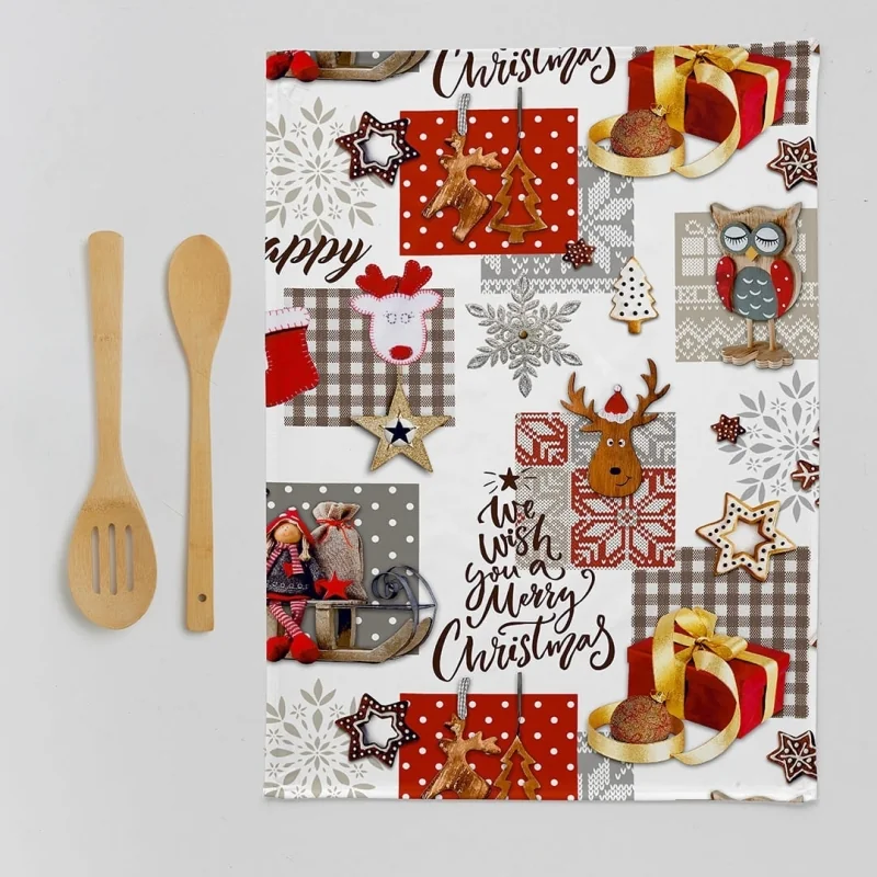 Zestaw 2 paños kuchennych z nadrukiem motywów bożonarodzeniowych. Udekoruj swój świąteczny stół najlepszymi wzorami i zaskocz swoich gości. Łatwe do mycia i deskowania, praktyczne i łatwe do czyszczenia. Kombinacje ze sposobem gry