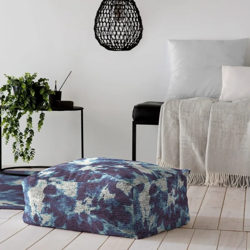 O pufe Rodier Azuri é um pufe de estilo moderno em azul. Azuri simula o estilo tie dye com tinta azul espalhada pelo tapete. Combina muito bem se você tiver um quarto com outros elementos azuis. É um tapete que se adapta a estilos modernos como minimalista ou vanguardista. É fabricado na Espanha com algodão 100% reciclado. Não se esqueça de combiná-lo com o tapete a condizer. Disponível em dois tamanhos