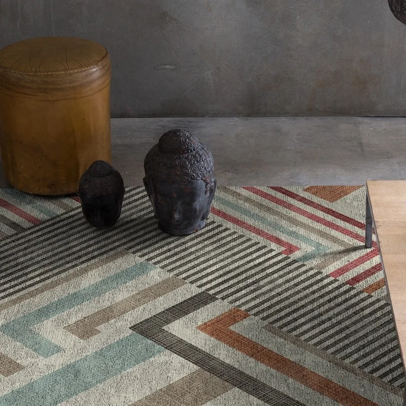 La alfombra Rodier Blok es una alfombra rectangular de estilo moderno y multicolor. Blok es una alfombra elegante con un dibujo formado a través de líneas de diferentes colores dispuestas de manera equilibrada sobre una base de color natural o beige. Se adapta a varios estilos decorativos. Fabricada en España con algodón 100% reciclado.
