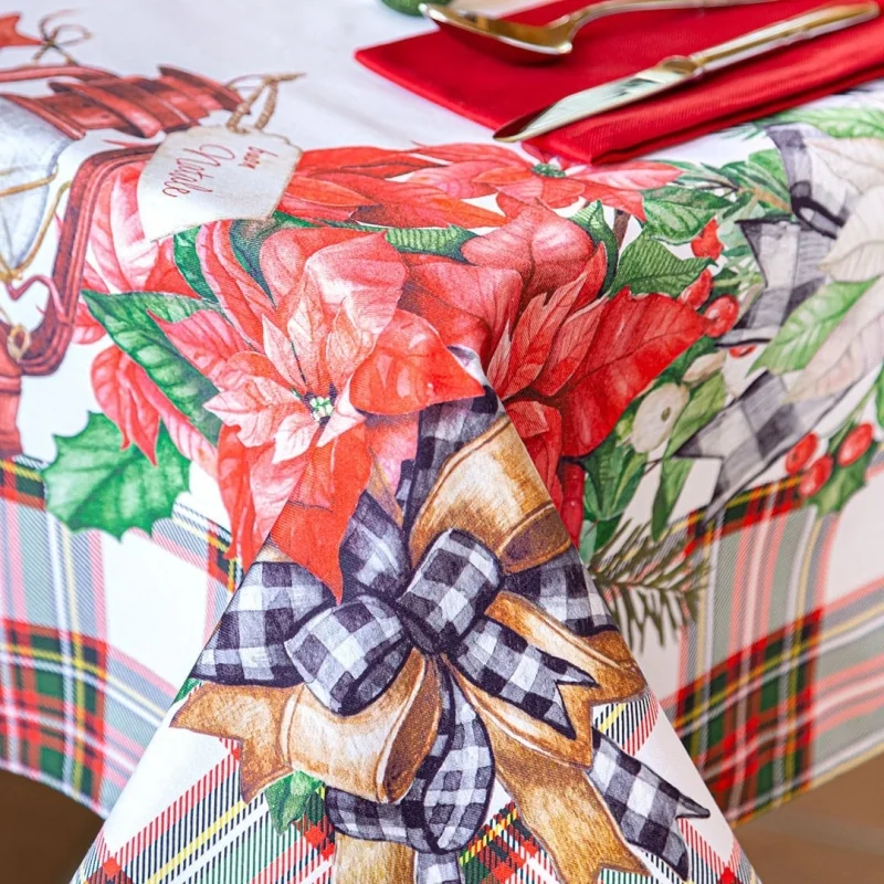 Toalha de mesa em algodão estampada com motivos natalinos. Decore a sua mesa neste Natal com os melhores designs e surpreenda os seus convidados. Fácil lavagem e engomadoria, armazenamento prático e fácil.